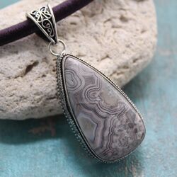 Подвеска из кружевного агата ботсвана, посеребрение 925 пробы.