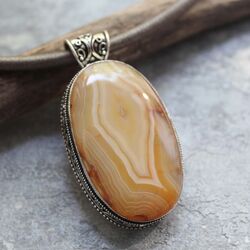 Подвеска из среза слоистого агата, серебра 925 пробы.