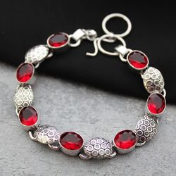 Браслет из ярко-красного граната (гранатового кварца), посеребрение 925 пробы.