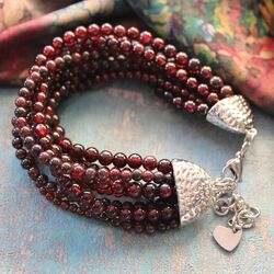 Браслет из натурального граната (Шри-Ланка), посеребренных родированных элементов (Чехия).