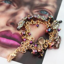Различные оттенки, формы и фактура натурального жемчуга великолепно выглядят вместе - роскошный черный с радужными обертонами, необыкновенный барочный жемчуг в виде золотых слитков и уникальный речной насыщенного лилового оттенка!