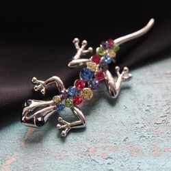Брошь в виде потрясающей ящерки из разноцветных страз, металлического сплава.