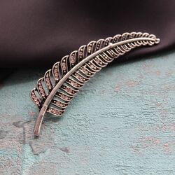 Брошь в виде пера из серебристого с чернением сплава, прозрачными кристаллами.