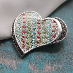 Брошь в виде плетенного сердечка со стразами и цветной эмалью.