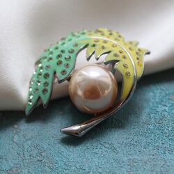 Брошь из металлического сплава, эмали, страз, жемчуга майорка.