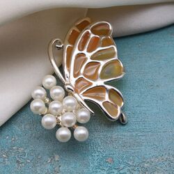 Брошь в виде букетика из жемчужин и нежной бабочки.