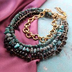 Колье из натуральной бирюзы (шт. Аризона, США), раухтопаза (дымчатого кварца), латунной фурнитуры ручной работы (Италия).