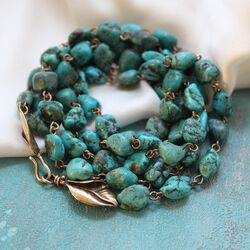 Потрясающий цвет натурального камня, эффектная застежка в виде изящных листьев! Изумительное украшение из редких камней - самородки идеально подобраны по цвету и форме!