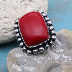 Кольцо из коралла (прессованного), посеребрение 925 пробы.