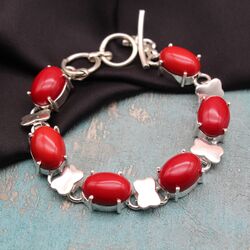 Браслет из красного коралла (прессованный), посеребрение 925.