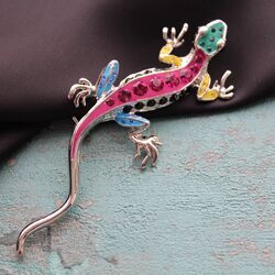 Брошь в виде потрясающей ящерки из разноцветных страз, металлического сплава.