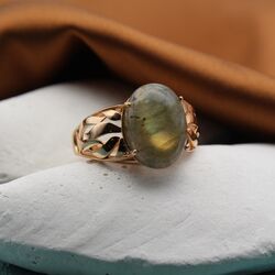 Эффектное кольцо из лабрадора с золотой ирризацией, серебра 925 пробы с золочением.