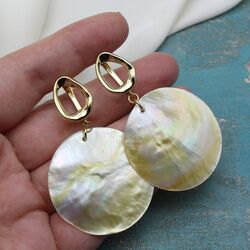 Легкие, оригинальные, заметные, невероятно симпатичные серьги из потрясающего природного золотистого перламутра!
