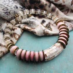 Оригинальное украшение - разнообразные, богатые фактуры камней, потрясающие нежно розово -сливочные оттенки камней, необычные формы!