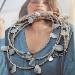 Легкое, универсальное украшение - благородный серо-серебристый оттенок халцедона и агата будет гармонично смотрется с огромным количеством цветов и оттенков!