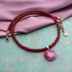 Ожерелье из граната, среза сталактита кварца.