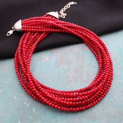 Ожерелье из натурального красного коралла, посеребренной, родированной фурнитуры.