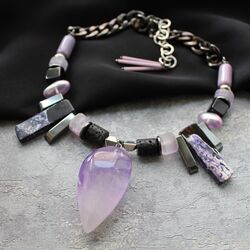 Ожерелье из крупного натурального аметиста, агата, лавы, стекла, керамики.