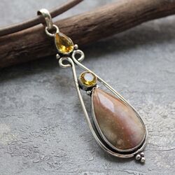 Подвеска из яшмы, цитрина, посеребрение 925.