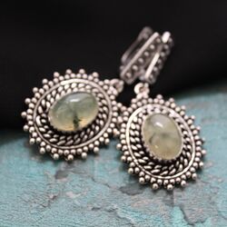 Серьги из пренита, посеребрение 925 пробы.