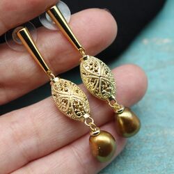 Серьги из барочного золотисто-бронзового жемчуга, позолоченной фурнитуры.