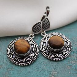 Серьги из натурального тигрового глаза, посеребрение 925.