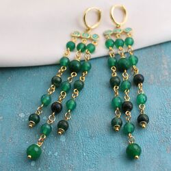 Серьги из хризопраза, зеленого авантюрина, позолоченной 24К фурнитуры с деликатной бирюзовой патиной.