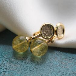 Серьги из натурального золотистого цитрина, позолоченной 24К фурнитуры с микроцирконами.