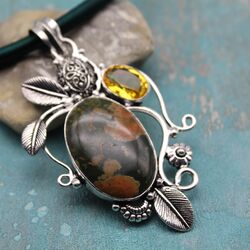 Подвеска из океанической яшмы, желтого кварца, посеребрение 925 пробы.
