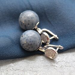 Коралл имеет натуральную окраску синего цвета ("потертой джинсы") и потрясающую фактуру! Серьги выглядят стильно и современно!