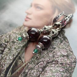 Серьги из натурального граната, зеленого хризопраза, посеребрение 925 пробы.