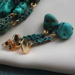 Серьги из самородков бирюзы (магнезита), позолоченной 24К фурнитуры, бронзы с бирюзовой патиной.