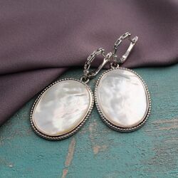 Серьги из натурального перламутра, родированного металлического сплава, серебра.