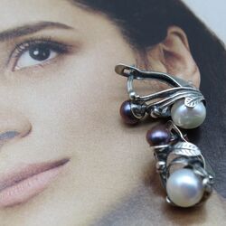 Серьги из натурального белого и черного жемчуга, посеребренной 925 фурнитуры.