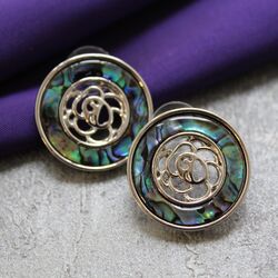 Серьги - гвоздики из перламутра гелиотиса, посеребренного родированного сплава.