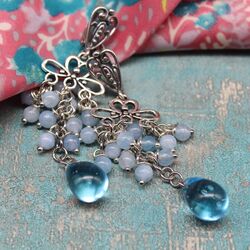 Серьги из натурального халцедона, богемского стекла, посеребрение 925 пробы.