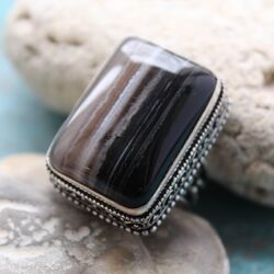 Кольцо из темного полосатого агата, серебра 925.