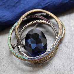 Брошь из разноцветных страз, кристалла глубоко синего цвета, металлического сплава.