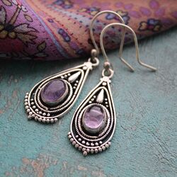 Серьги из темно-лилового аметиста, посеребрение 925 пробы.