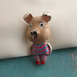 Брошь в виде симпатичного поросенка ( символа 2019 года) из серебристого сплава и эмали.