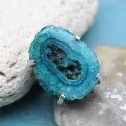 Кольцо из фрагмента сталактита кварца зеленого цвета, серебра 925.