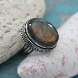 Кольцо из золотистого лабрадора, серебра 925 пробы.