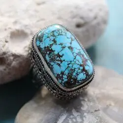 Кольцо из бирюзы в кружевной оправе