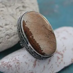 Кольцо из песочной яшмы, серебро 925 пробы.