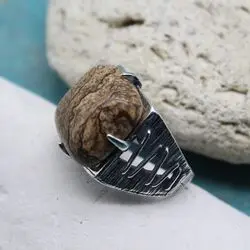 Кольцо из песочной яшмы, посеребрение 925 пробы.