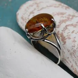 Кольцо из каленого балтийского янтаря (г.Калининград), мельхиора.