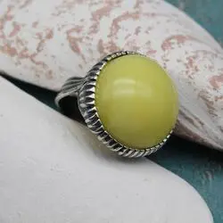 Кольцо из желтого балтийского янтаря (г.Калининград), мельхиора.