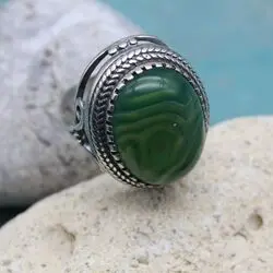 Очень симпатичные кольцо - великолепный образец натурального агата с ленточным узором и красивыми оттенками от темно-изумрудного до светло-зеленых оттенков!