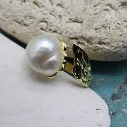Кольцо из позолоченной латуни 24К, барочгого жемчуга.