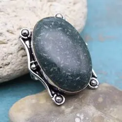 Кольцо из темно-зеленого авантюрина, посеребрение 925 пробы.